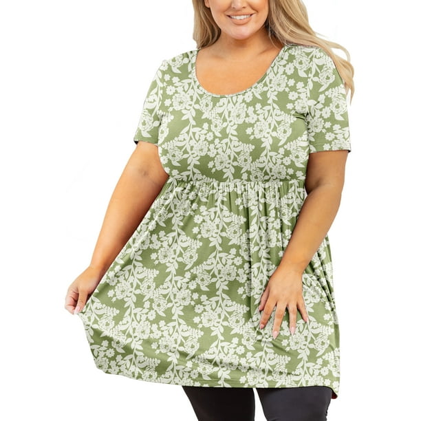 Showmall Plus Size Tunic For Women Short Sleeves Green Roses 3x Tops Scoop Neck Clothes Summer Flowy Maternity Clothing Shirt Walmart Com